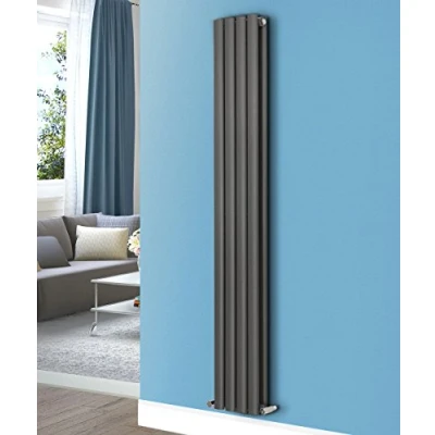 NRG Designer Anthracite Double Oval Panel Column Vertical Radiator 1800x236mm Modern Tall Upright Bathroom Central Heating