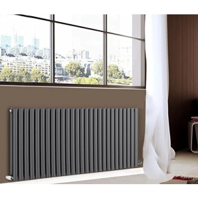 NRG Designer Horizontal Oval Column Bathroom Radiator 600x1593mm Anthracite Double Panel Premium Central Heating 15 Year Guarantee