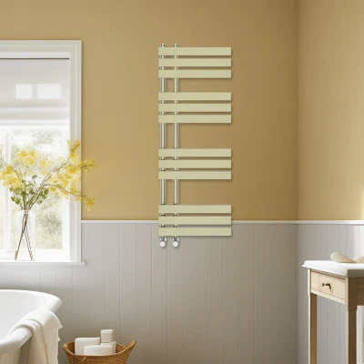 General description These up-market designer heated towel rails provide high heat output to warm your towels as well as your bathroom. Made from hard-wearing steel with a durable high finish, they not only enhance the aesthetic of your bathroom but also keep it warm and snug. Technical specifications Dimensions: 1200 x 450 mm Pressure tested to 10 bar Maximum working pressure: 7 bar Manufactured in accordance with BS EN 442 Installation Connects to your central heating system like a normal radiator Can be converted to dual fuel for warm towels all year round (element not included) Fixing pack included complete with plugs and vents Installation by a qualified plumber is recommended Usage Provides high heat output for warming towels and bathrooms Other information 10 year "fit and forget" guarantee applicable exclusively for water leakage claims within the warranty period Excludes radiator valves