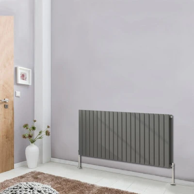 General description Our radiators offer a heating solution that features a contemporary design at a competitive price. They easily fit into your central heating system like a normal household radiator, meaning no complicated installation. The modern manufactured finish process makes the radiators elegant looking and suitable for any kind of interior design. Technical specifications Material: 1.5mm premium mild steel Model: Double Flat Panel in Anthracite Size: 600x1428mm (HxW) Water inlet/outlet size: 1/2" Bars: 42 Accreditation: Triple layered finish to exceed 200 hours of neutral acid salt spray testing Tested to BS & EN442 Complies with ISO9001:2008 regulations Compatibility and accessories Compatible for use on all UK heating systems (tank fed or combi systems) No valves included Other information All radiators come with a manufacturer-leading 15 year guarantee Tested under high hydraulic pressure to ensure impermeability