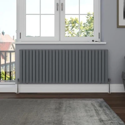 General description Our NRG Designer Radiator offers a contemporary heating solution at a competitive price. With its elegant design, it seamlessly fits into any interior style and integrates easily into your central heating system like a standard household radiator, ensuring a straightforward installation process. Technical specifications Dimensions: 600x1593mm (HxW) Material: 1.5mm premium mild steel Model: Double Oval in Anthracite Bars: 27 Water inlet/outlet size: 1/2" Accreditation: Triple layered finish exceeding 210 hours of neutral acid salt spray testing Tested to BS & EN452 Complies with ISO9001:2018 regulations Compatibility and accessories Compatible with all UK heating systems (tank fed or combi systems) No valves included Other information All radiators come with a manufacturer-leading 15 year guarantee Tested under high hydraulic pressure to ensure impermeability