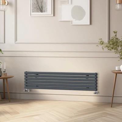 General description Our NRG Horizontal Oval Column Radiator offers a contemporary heating solution at a competitive price. Designed to fit seamlessly into your central heating system like a standard household radiator, it ensures easy installation without complications. Technical specifications Material: 1.5mm premium mild steel Model: Double Oval in Anthracite Size: 1600x354 mm (HxW) Water inlet/outlet size: 1/2” Tested to BS & EN442 Complies with ISO9001:2008 regulations Compatibility and accessories Compatible with all UK heating systems (tank fed or combi systems) Includes both vertical and horizontal mounting brackets (horizontal brackets come separately) Installation For horizontal wall mounting, it is necessary to remove the blocker Usage Designed for use in standard central heating systems Other information All radiators come with a manufacturer-leading 15-year guarantee Tested under high hydraulic pressure to ensure impermeability Modern manufactured finish process provides