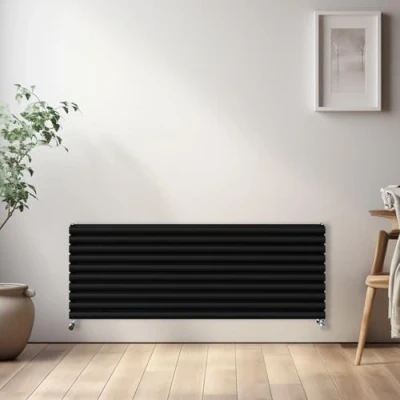 NRG Horizontal Oval Radiator Bathroom Central Heating Double Column Designer Radiators 1600x590mm Black