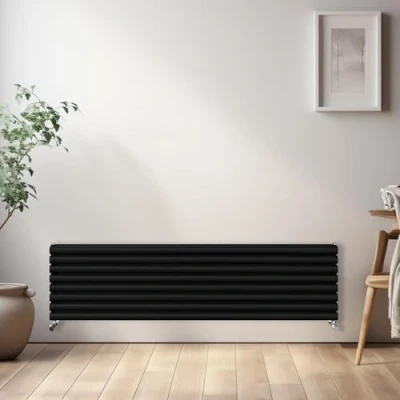 NRG Horizontal Oval Radiator Bathroom Central Heating Double Column Designer Radiators 1800x472mm Black