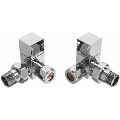 General description A pair of Corner Square Head Valves designed for modern or minimalist bathrooms. These beautifully engineered valves neatly finish the overall look of your bathroom while ensuring optimal performance of your towel rail. Finished in high-quality chrome for a sleek appearance. Technical specifications Material: Brass Finish: Chrome Guarantee: 10 Years