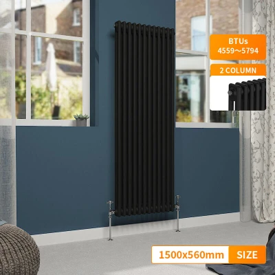 General description Our NRG Traditional Cast Iron Style Vertical Vintage Radiator offers a heating solution that combines a classic design with modern functionality at a competitive price. It easily integrates into your central heating system like a standard household radiator, ensuring a straightforward installation process. Technical specifications Dimensions: 1500 x 560 mm Material: Premium Mild Steel Water inlet/outlet size: G1/2" Colour: Black Model: Cast Iron Style 2 Column Radiator Accreditation: Powder coated finish exceeding 200 hours of neutral acid salt spray testing Tested with BS EN 442 Standards Complies with ISO9001:2008 regulations Compatibility and accessories Compatible with all UK heating systems (tank fed or combi systems) Brackets and fixings included No valves or radiator feet included Installation Simple installation process, fitting into existing central heating systems Usage Designed for use in residential heating applications Other information All radiators