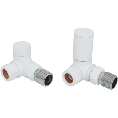 General description These Manual Corner Radiator Rad Towel Rail Valves are designed for use with central heating radiators or towel rails. Made from a combination of ABS and brass, they feature a stylish white finish and are suitable for corner installations. Technical specifications Connections: 15mm inlet, 1/2" BSP outlet Material: ABS/Brass Colour: White Set Includes 1pc of Manual Valve 1pc of Lock-Shield Valve Installation It is recommended to have this item installed by a qualified plumber. Other information Images are for illustration purposes; colors may differ depending on your device screen and lighting. This product comes with a 5 years fit and forget guarantee.