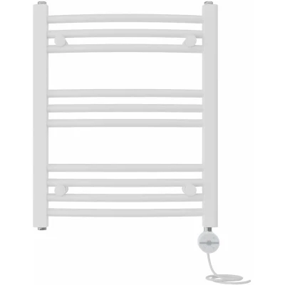 NRG Prefilled Curved Electric Heated Towel Rail Radiator White Thermostatic Bathroom Warmer with Touch Screen Display 600x500mm 400W