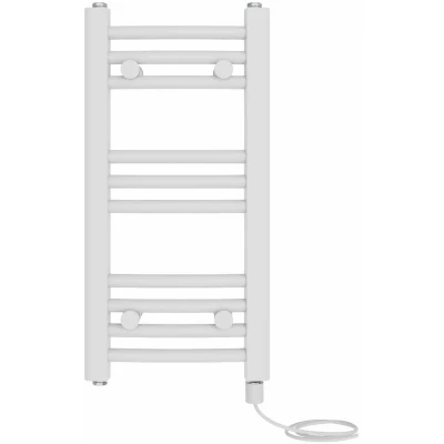 NRG Prefilled Electric Heated Curved Towel Rail Warmer Manual Bathroom White Radiator 300mm (W) x 600mm (H) 200Watt