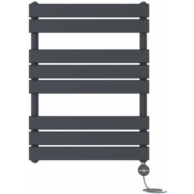 General description The Prefilled Thermostatic Electric Flat Panel Heated Towel Rail Ladder Warmer Radiator in Anthracite is a stylish and contemporary addition to any bathroom. With its modern finish and elegant design, it not only enhances the aesthetic appeal of your space but also provides efficient heating for your towels. Technical specifications Dimensions: 800x600mm Material: Low carbon steel Power: AC230V/50HZ Temperature setting range: 30°C to 70°C Connection Size: 1/2" BSP connection thread IP Rating: IPX4 Appliance Class: Class 1 Cable Length: Approximately 1.1m Element tube lengths: 150W - 245mm, 200W - 245mm, 250W - 315mm, 300W - 315mm, 400W - 395mm, 500W - 465mm, 600W - 545mm, 700W - 685mm, 800W - 685mm, 1000W - 755mm Compatibility and accessories Compatible for use on all UK heating systems (tank fed or combi systems) Comes with T-piece and blanking plug Valves are not included Installation Tested under high hydraulic pressure to ensure impermeability Installation