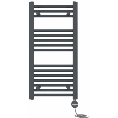 NRG Prefilled Straight Electric Heated Towel Rail Radiator Anthracite Thermostatic Bathroom Warmer with Touch Screen Display 800x400mm 400W