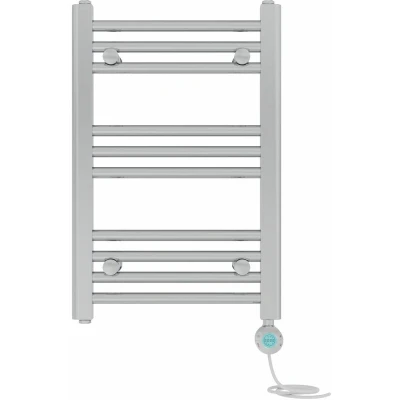 NRG Prefilled Straight Electric Heated Towel Rail Radiator Chrome Thermostatic Bathroom Warmer with LCD Display 600x400mm 200Watt