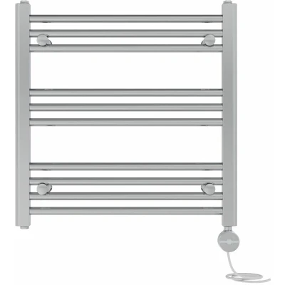 NRG Prefilled Straight Electric Heated Towel Rail Radiator Chrome Thermostatic Bathroom Warmer with Touch Screen Display 600x600mm 400W