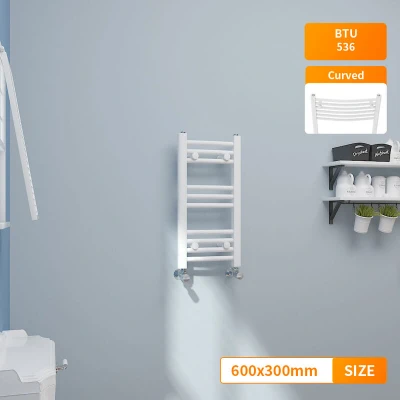 General description Contemporary style that fits any kind of interior design. The modern manufactured finish process gives the radiator a smooth and elegant appearance. Technical specifications Material: Low carbon steel Model: Curved in White Size: 600x300mm Inlets and outlets: 1/2" Certification: Powder coated finish exceeding 200 hours of neutral acid salt spray testing Tested to BS & EN442 Complies with ISO9001:2008 regulations Complies with UKCA regulations Compatibility and accessories Compatible for use on all UK heating systems (tank fed or combi systems) Valves are not included Installation Tested under high hydraulic pressure to ensure impermeability Other information All radiators come with a manufacturer-leading 15-year warranty (applicable exclusively for water leakage claims within the warranty period)