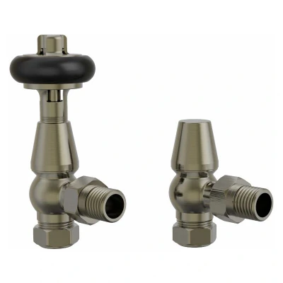 NRG Traditional Antique Angled Central Heating Radiator Valve 15mm Thermostatic Lockshield Valves Black Nickel with Hand Wheel