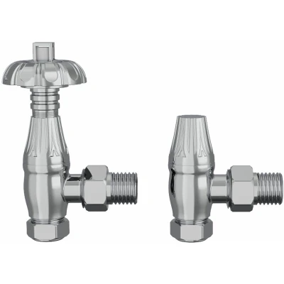 General description These Thermostatic TRV Traditional Antique Design Angled Radiator Valves are crafted from high-quality brass and finished in a stylish chrome. They are designed to control the temperature of central heating radiators or towel rails, providing both functionality and an elegant touch to your home heating system. Technical specifications Material: Brass Style: Angled Connection: Industry standard 15mm Outlet: 1/2" BSP MI Colour: Chrome Set Includes 1pc of Thermostatic Valve 1pc of Lock-Shield Valve Installation It is recommended to have this item installed by a qualified plumber. Other information 5 years fit and forget guarantee Images for illustration purposes - colours may differ depending on your device screen and lighting