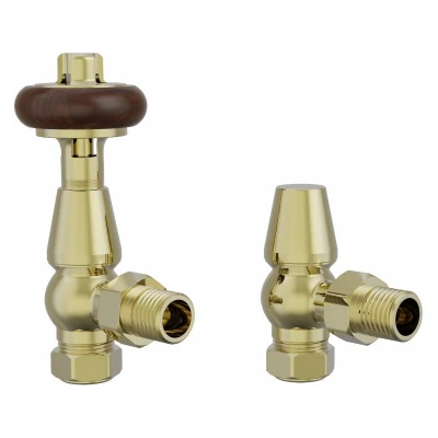 General description Traditional Antique Design TRV Thermostatic Angled Radiator Valves Pair in Polished Brass are designed to enhance the aesthetic of your heating system while providing efficient temperature control. These valves are suitable for use with central heating radiators or towel rails. Technical specifications Material: Brass Style: Angled Connections: 15mm inlet, 1/2" BSP MI outlet Compatibility and accessories Set Includes: 1 Thermostatic Valve & 1 Lock-Shield Valve Installation We suggest you ask a qualified plumber to install this item. Other information Images for illustration purposes - colours may differ depending on your device screen and lighting. 5 years fit and forget Guarantee.