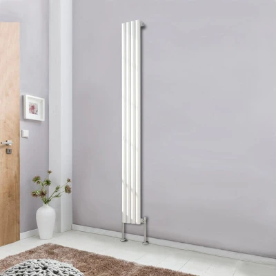 NRG Vertical 1800x236 Oval Column Designer Radiator Bathroom Central Heating Single Panel Gloss White