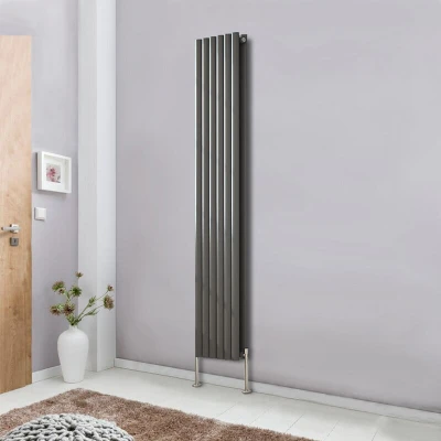 General description Our NRG Designer Radiator offers a contemporary heating solution at a competitive price. With its elegant design, it seamlessly fits into any interior style and easily integrates into your central heating system like a standard household radiator, ensuring a straightforward installation process. Technical specifications Dimensions: 1800x354mm (H x W) Material: 1.5mm premium mild steel Model: Double Oval in Anthracite Bars: 12 Water inlet/outlet size: 1/2" Triple layered finish tested to exceed 200 hours of neutral acid salt spray testing Tested under high hydraulic pressure for impermeability Complies with BS & EN442 and ISO9001:2008 regulations Compatibility and accessories Compatible with all UK heating systems (tank fed or combi systems) No valves included Installation No complicated installation required; fits like a normal household radiator Usage Designed for use in central heating systems Other information All radiators come with a manufacturer-leading
