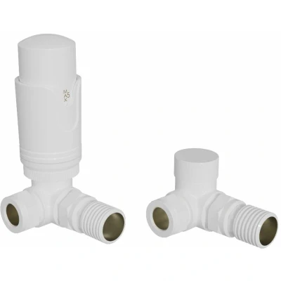 General description These Thermostatic TRV Lockshield Corner Radiator Valves are designed for efficient temperature control in central heating systems. The set includes both a thermostatic radiator valve and a lockshield valve, making it ideal for use with radiators or towel rails. Technical specifications Connections: 15mm inlet, 1/2" BSP outlet Radiator Valve Type: Thermostatic + Lockshield Material: ABS/Brass Colour: White Compatibility and accessories Suitable for central heating radiators or towel rails Other information Pack includes: One Thermostatic Radiator Valve and One Lockshield Radiator Valve