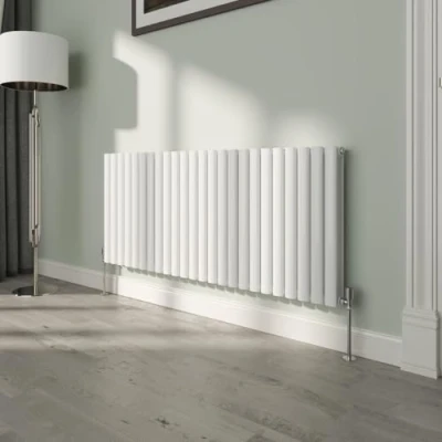 NRG White Oval Radiator Horizontal 600x1416mm Double Panel Central Heating Radiators Perfect for Bathrooms Kitchen Living Room