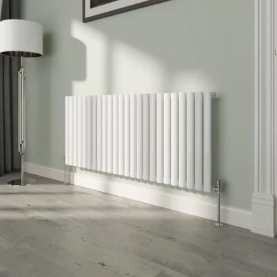 NRG White Oval Radiator Horizontal 600x1416mm Single Panel Central Heating Radiators Perfect for Bathrooms Kitchen Living Room