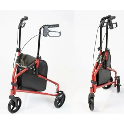 NRS Healthcare 3 Wheel Steel Rollator Walker Walking Aid with Bag, & Lockable Brakes, Folding Height Adjustable Red