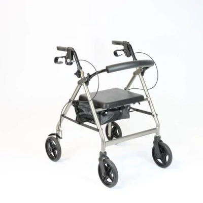 NRS Healthcare A Series Petite Lightweight Folding 4 Wheel Rollator with Seat and Bag Grey