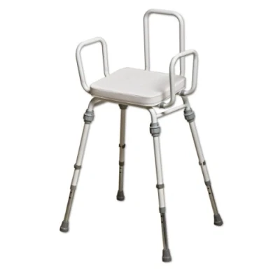 NRS Healthcare Compact Easy Perching Stool Vinyl M48477 - Modular with Arms and Backrest Allows user to sit at a comfortable height in the kitchen, bathroom or shower Supports user to continue everyday tasks independently Height adjustable: 82.5 - 97.5 cm (32.5 - 38.5 inch). Max user weight: 160 kg (25 st) Epoxy coated steel for strength and durability