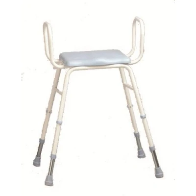 Durable, slip resistant polyurethane seat ideal for bathroom and shower use or in the kitchen Angled seat to enable user to sit and rise with greater ease No risk of corrosion Armrests for help rising and security