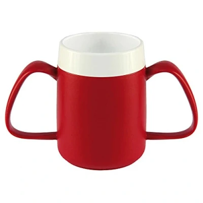 Cone interior shape that tilts contents into the user's mouth easier Reducing the need to tilt your head back when drinking Lightweight insulated mug to keep drinks hot or cold for longer It has two extra large easy grip handles Wide base for stability when not in use