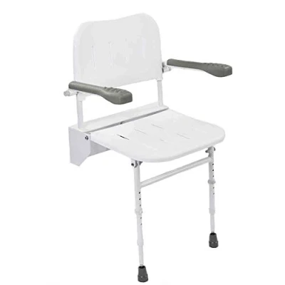 NRS Healthcare Wall Mounted Folding Shower Seat M53370 with Legs, Back and Arms