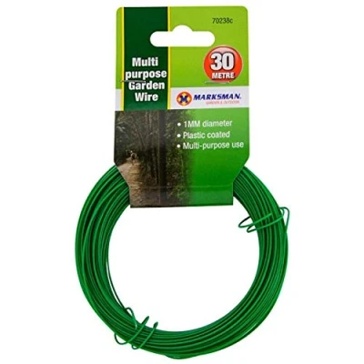 Nti MARKSMAN 20 x Meter Garden Wire Galvanised Green Plant Tie Home Thick Silver Thin Metal Decking Fencing Outdoors Indoor General Multi Purpose Coated UK FREE P&P (1.0mm 30m Wire)
