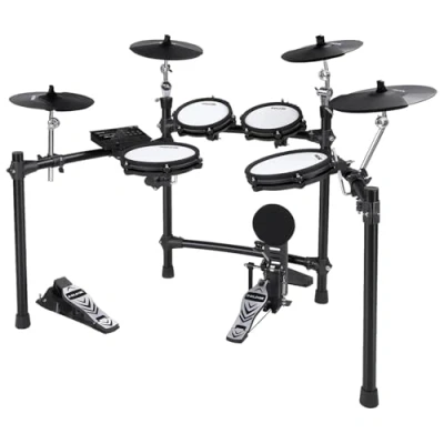 Realistic Playability | Dual-layer mesh drum pads with dual-zone triggers offer a natural feel and dynamic response, ideal for both beginner and professional drummers Versatile Sound Control | 18 drum presets, master EQ & compression, individual overdrive, and reverb effects provide extensive sound customization for any musical style Comprehensive Connectivity | Equipped with USB MIDI/audio interface, Bluetooth adaptor, and multiple input/output options for seamless integration with recording software, smartphones, and external devices Enhanced Learning & Practice | Built-in drum coach and recording functions help improve technique and track progress, making it a valuable tool for musicians of all skill levels Compact & Adjustable Design | Adjustable rack stand, separate kick pad, and compact dimensions make it easy to fit in small spaces without sacrificing comfort or performance