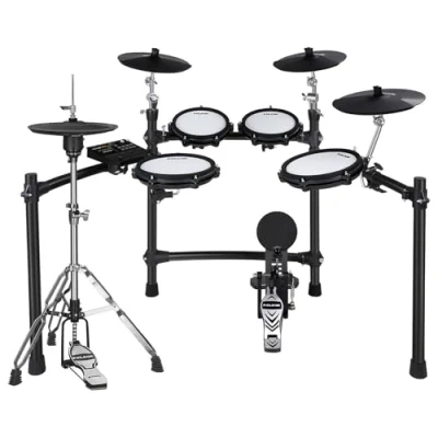 Authentic playing feel | Dual-layer mesh pads with adjustable sensitivity, rim-shot, and side-stick detection for realistic performance Flexible connections | USB, MIDI, and audio outputs for recording, DAW integration, or silent practice with headphones Wireless convenience | Bluetooth adaptor allows you to stream backing tracks and jam wirelessly Complete drum setup | Hi-hat pedal, kick pad, and adjustable triggers provide a comfortable, natural drumming experience Built-in practice and recording tools | Drum coach, recording function, and DAW compatibility help improve timing, technique, and creativity Fully customise your sound | The DM-310H module includes 18 preset drum kits, letting you choose different sounds for each pad. Adjust trigger sensitivity, crosstalk, and gain to create a setup that feels natural and personal to your playing style.