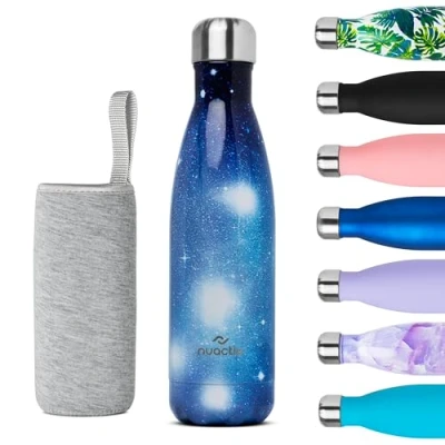 Nuactiv Stainless Steel Water Bottle, Vacuum Insulated, 12hrs Hot & 24hrs Cold Drinks, BPA Free, Metal Bottle 500ml, Leakproof Double Walled Thermal Flask for Kids, Travel, Gym, Sports Galaxy
