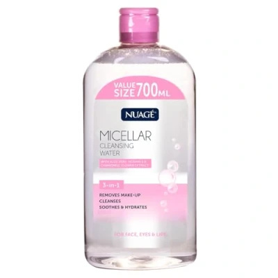 Nuage Micellar Cleansing Water with Aloe Vera, Vitamin E & Chamomile Flower Extract 3 in 1 Gently Removes Makeup, Cleanses, Soothes Hydrates Skin Suitable for Face, Eyes and Lips (700ml)