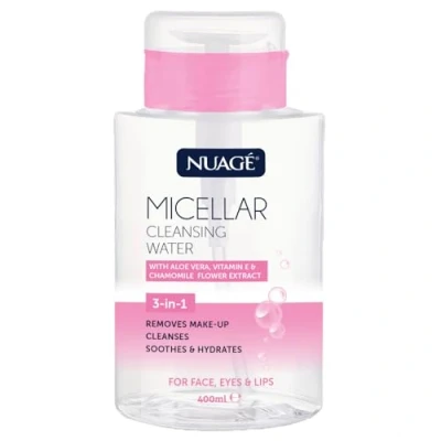 Nuage Micellar Cleansing Water with Aloe Vera, Vitamin E & Chamomile Flower Extract Gently Removes Makeup, Cleanses, Soothes Hydrates Skin For Face, Eyes Lips (400ml Pump Dispenser)
