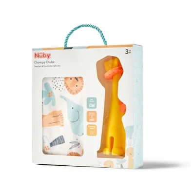 Nuby Chompy Chube Gift Set Soft on Sore Gums Easy to Hold Blankie Dishwasher Safe