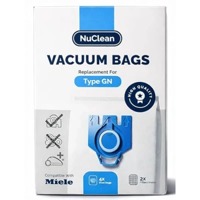 【Fully Compatible – Designed for Miele GN Vacuums】NuClean hoover bags are engineered to the same high standard as Miele HyClean GN originals. Compatible with Miele GN, C1, C2, C3, S2, S5, S8, Classic C1, Complete C2, and Complete C3 models, or any vacuum using the blue GN collar 【Zero Dust Zero Fuss】NuClean replacement vacuum cleaner bags are built to deliver a cleaner, healthier home. The multi-layer microfiber construction traps up to 99.9% of fine dust, pollen, and allergens, keeping your air pure and your vacuum performing at its best. Ideal for pet owners, allergy sufferers, and households that value hygiene and convenience. 【Nothing Gets Out】Featuring triple-layer filtration and a self-sealing collar, NuClean replacement dust bags for Miele GN vacuums lock in every particle. Once removed, the bag seals automatically—preventing dust leakage and ensuring a hygienic, mess-free cleaning experience. 【Optimal Performance】Engineered for 3D efficiency, these Miele hoover bags maintain consistent suction even as they fill. Each pack includes 4 hoover bags, 2 cut-to-size filters, and 5 scented freshener sticks 【NuClean Replacement】This product is not manufactured by Miele but is fully compatible and designed as a replacement for Miele GN-type vacuum bags. The Miele name and part numbers are used for reference purposes only., Weight: 0.4850169764 pounds, Manufacturer: NuClean