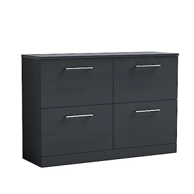 nuie ARN1433W2 Arno Floor Standing 4 Drawer Vanity Unit & Worktop, 1200mm, Soft Black