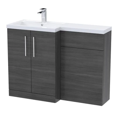 nuie ARN511L Arno Modern Bathroom Left Hand 2 Soft Close Door Vanity Basin and WC Combination Unit, 1100 x 390mm, Anthracite Woodgrain