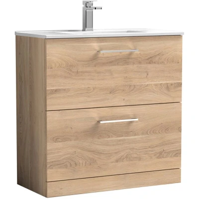 Nuie Arno Floor Standing 2 Drawer Vanity Unit with Basin 800mm Wide Bleached Oak
