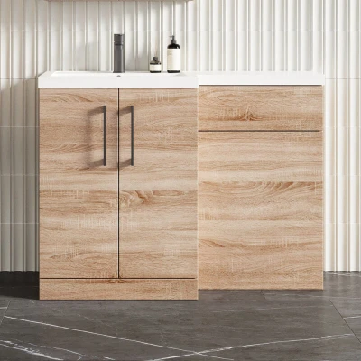 Nuie Arno LH Combination Unit with L Shape Basin 1100mm Wide Bleached Oak