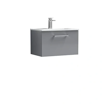 Nuie Arno Wall Hung 1 Drawer Vanity Unit with Basin 2 600mm Wide Satin Grey