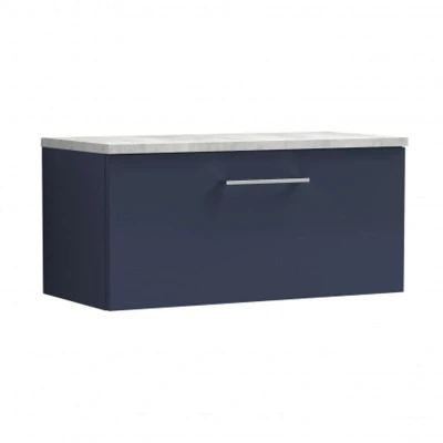 Nuie Arno Wall Hung 1 Drawer Vanity Unit with Bellato Grey Worktop 800mm Wide Midnight Blue