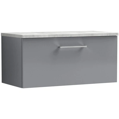 Nuie Arno Wall Hung 1 Drawer Vanity Unit with Bellato Grey Worktop 800mm Wide Satin