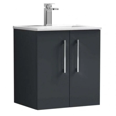 Nuie Arno Wall Hung 2 Door Vanity Unit with Basin 500mm Wide Satin Anthracite