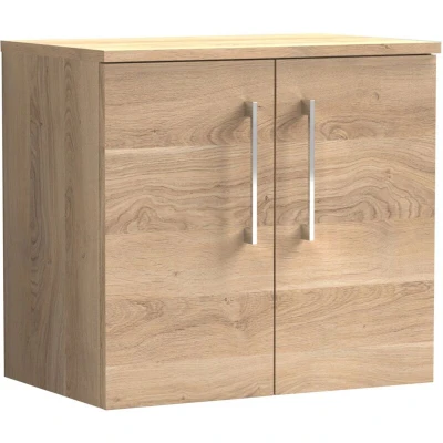 Nuie Arno Wall Hung 2 Door Vanity Unit with Worktop 600mm Wide Bleached Oak