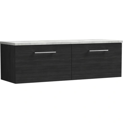 Nuie Arno Wall Hung 2 Drawer Vanity Unit with Bellato Grey Worktop 1200mm Wide Charcoal Black Woodgrain